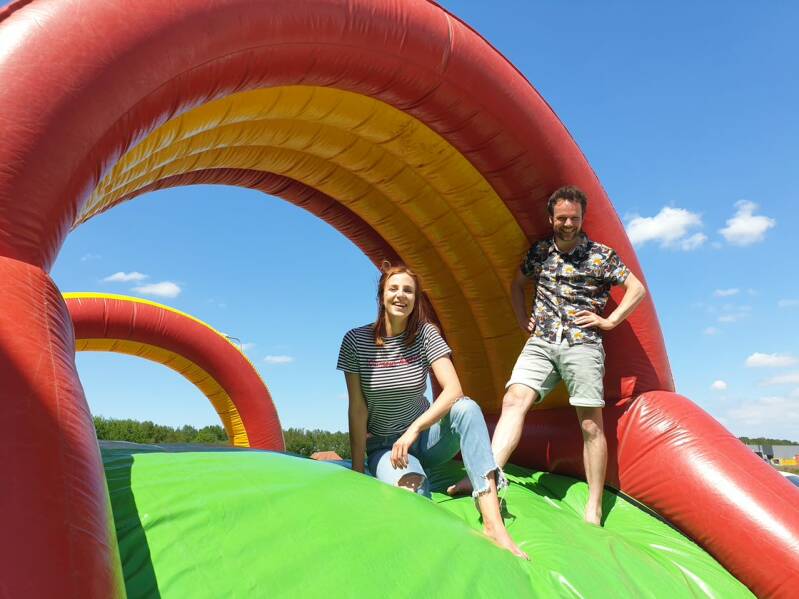 Frank en Lisanne op de opblaasbare stormbaan